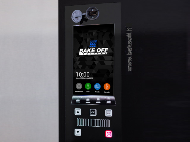 7-calowy kolorowy ekran LCD TFT POJEMNOŚCIOWY chroniony szkłem o grubości 5 mm, funkcja multi-touch, długotrwały w większości środowisk, odporny na kontakt z wodą, kurzem i tłuszczem, wyposażony w prosty, intuicyjny i konfigurowalny interfejs, szybkie zarządzanie szefem kuchni i przepisy użytkownika, 500 programowalnych przepisów, obsługuje ponad 30 języków, jest również wyposażony w programy gotowania nocnego. Vision zarządza programami i funkcjami piekarnika w sposób kompletny i autonomiczny.