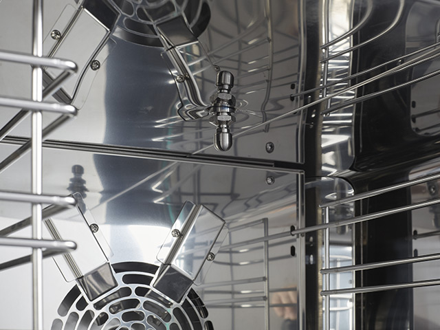 Nasz system wielowentylatorowy z cykliczną zmianą kierunku obrotów ma na celu zapewnienie idealnego rozprowadzenia gorącego powietrza w komorze pieczenia i zagwarantowanie doskonałego ugotowania nawet najdelikatniejszych produktów.